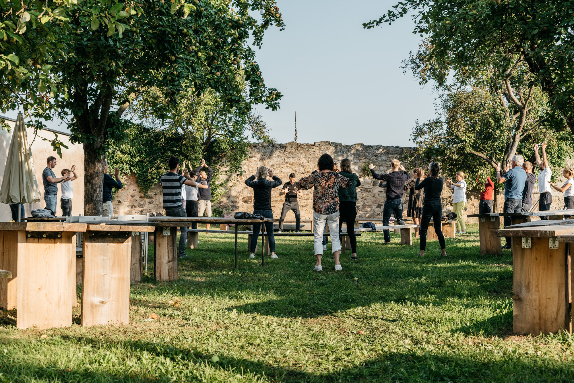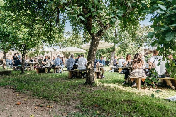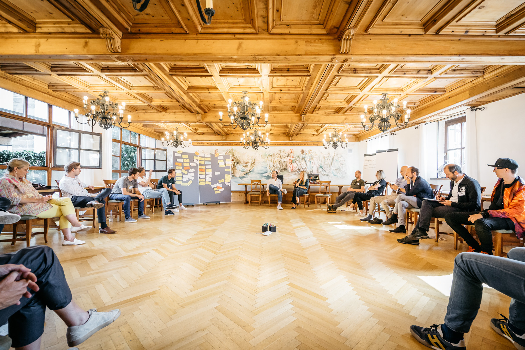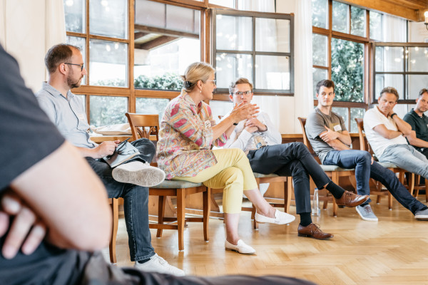 In den Begegnungen zwischen rund 100 Teilnehmerinnen und Teilnehmern wurden neue Wege erkundet, andere Orte ertastet und gemeinsam an den Entwürfen neuer Landkarten gearbeitet, die im neuen Heute Orientierung und Halt(ung) ermöglichen. Es wurden Perspektiven zusammen- und aufgefaltet und an inneren Landkarten orientiert. Umgeben von den spätsommerlichen Sphären in der fränkischen Provinz, lud neben dem inhaltlichen Programm auch die Szenerie dazu ein, Erinnerungen zu teilen und diese von einer neuen Sicht auf die Welt zu einem resonanzvollen Unternehmertum inspirieren zu lassen.