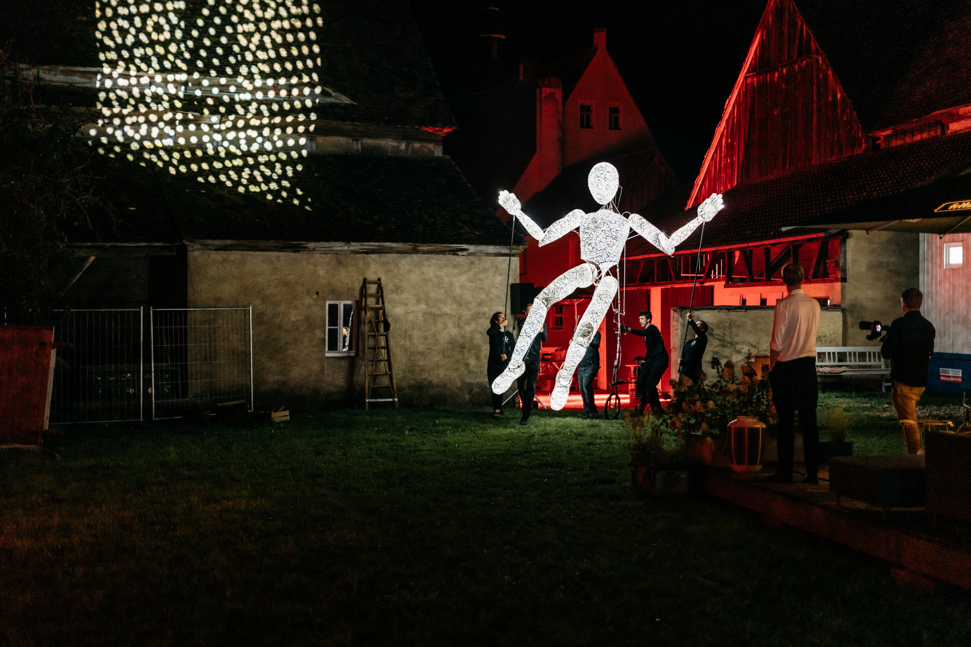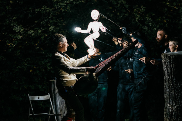Eine Lichtgestalt, deren Bedeutung erst im Zusammenspiel der Menschen entsteht und einen Freiraum für die eigene Fantasie und Projektionen öffnet. Ein musikalisches, interaktives und faszinierendes Erlebnis, bei dem Puppenspieler in Harmonie mit der Live-Musik einen gemeinsamen Atem finden.